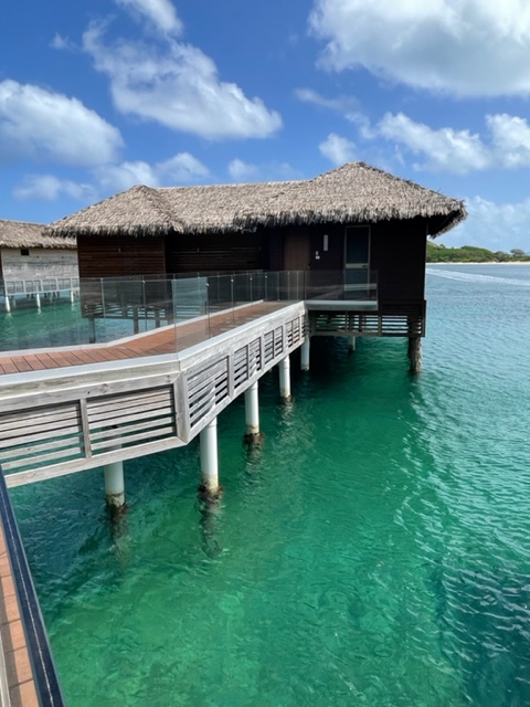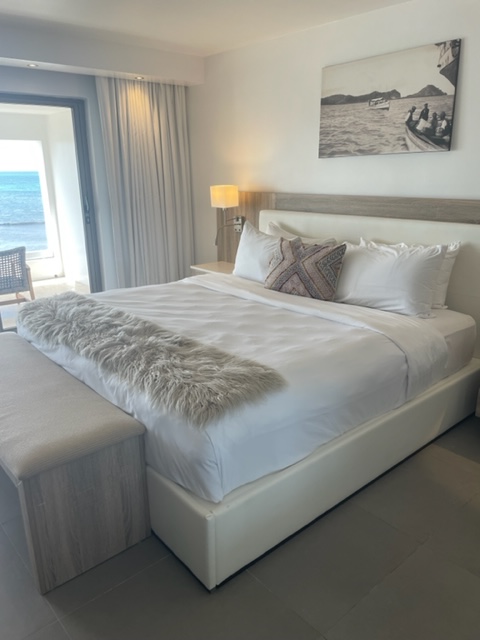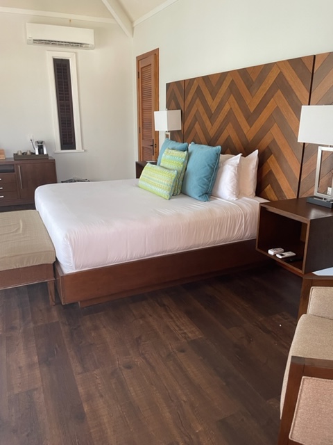 Royalton Antigua pleasantly surprised me. It was a beautiful, clean all-inclusive family-friendly resort with modern rooms, and a wide variety of food choices at their 8 restaurants. This 294 room hotel that opened in 2018 also has 5 bars and 5 pools and a beach with beautiful views. You can upgrade to their Diamond Club for more amenities, rent a Cabana for $110 a day with its own plunge pool or do any of their non-motorized water sports. There is both a Kids and Teens Club here as well as many activities for adults. Traveling with kids in your room but you don’t want 2 double beds? Here they offer 2 queen beds instead. And really looking for luxury? Stay in one of their 6 over the water bungalows.